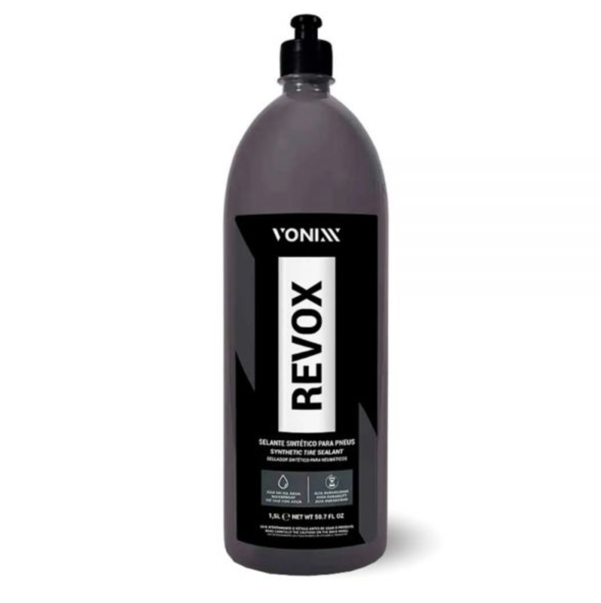 REVOX ES UN SELLADOR SINTÉTICO PARA NEUMÁTICOS DE ACABADO SATINADO, FORMULADO PARA PROTEGER, BRILLAR Y RENOVAR SU APARIENCIA, ADEMÁS DE FAVORECER UNA TOTAL REPELENCIA AL AGUA. SU FÓRMULA EXCLUSIVA NO CONTIENE DISOLVENTES, ES AMIGABLE CON EL MEDIO AMBIENTE Y NO ES INFLAMABLE. REVOX ES EXTREMADAMENTE RESISTENTE AL BARRO Y LA LLUVIA, DEJANDO EL NEUMÁTICO LIMPIO Y RENOVADO POR MÁS TIEMPO ADEMÁS DE FACILITAR SU MANTENIMIENTO EN ESE ESTADO.