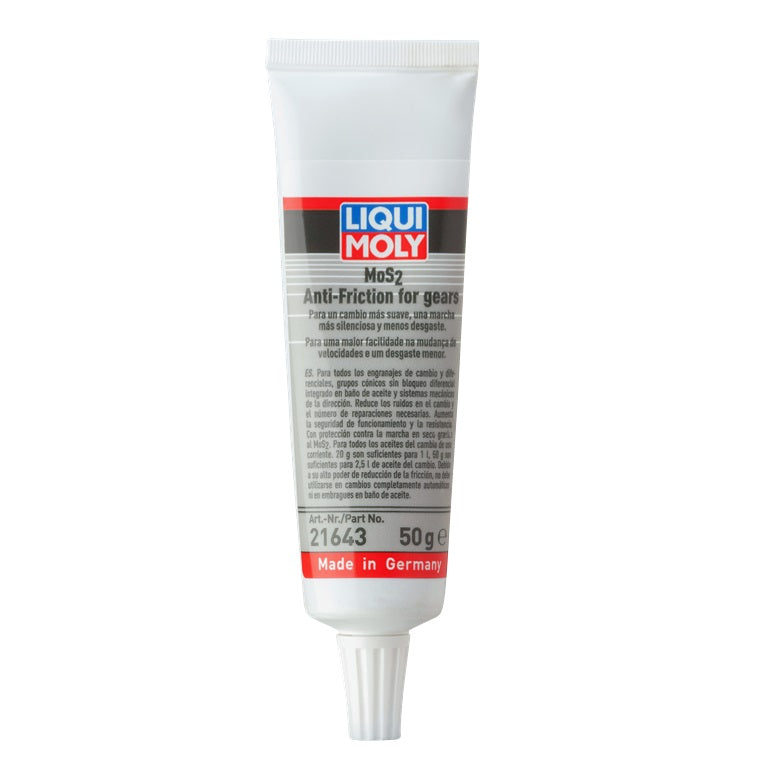 EL ADITIVO MOS2 FORMA UNA PELÍCULA LUBRICANTE ALTAMENTE RESISTENTE SOBRE TODAS LAS SUPERFICIES SOMETIDAS A FRICCIÓN O DESLIZAMIENTO. REDUCE LA FRICCIÓN, EL DESGASTE Y LOS PICOS DE TEMPERATURA. TODO ELLO TIENE COMO RESULTADO UNA MARCHA MÁS SUAVE, UNOS CAMBIOS MÁS FÁCILES Y UN RODAJE PRÁCTICAMENTE SIN DESGASTE DE RUEDAS DENTADAS, PARES DE FRICCIÓN Y PARES DE DESLIZAMIENTO. AUMENTA EN GRAN MEDIDA LA SEGURIDAD DE FUNCIONAMIENTO Y LA PROTECCIÓN CONTRA LA MARCHA EN SECO.